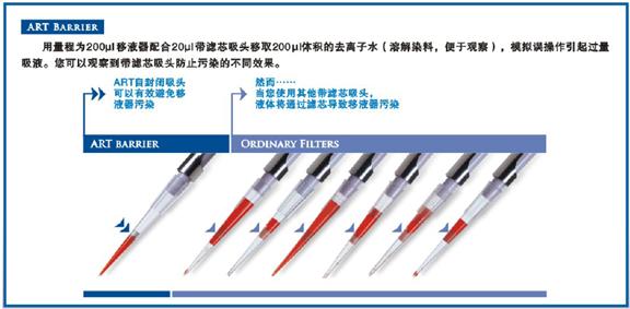 全世界的科學家公認ART系列吸頭為安全移液的首選。ART系列是至今唯一能100%確保氣溶膠和溶液不會透過的帶濾芯的吸頭,真正保證移液器不會被樣品污染。無論您做核酸擴增實驗,還是轉移放射線同位素、病毒、血清學樣品,專利設計的ART自封閉濾芯吸頭不僅能保證您的實驗結果,而且有效保護儀器和研究人員的安全。