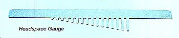 A clear, plastic FDA approved tool for checking the amount of headspace in packed cans.  The gauge is placed across the top of an open can, and the clear plastic teeth contact the liquid level inside the can.  The graduated teeth have measurements molded across the top of the gauge.  Measures headspace to 1/32”.